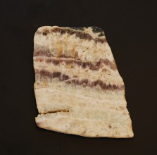 A cut and polished specimen showing three bands of amethyst in white quartz form Wheal Bellan in Cornwall.