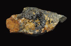 A small but rich specimen of cassiterite on quartz collected from St Ives Consols in 2005.