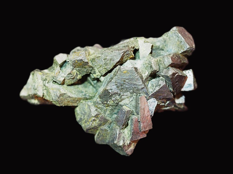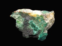 A small but rare specimen of reichanbachite and malachite with a few small meta torbernite crystals. Collected in the 1970,s during removal of the mine tips in the village.